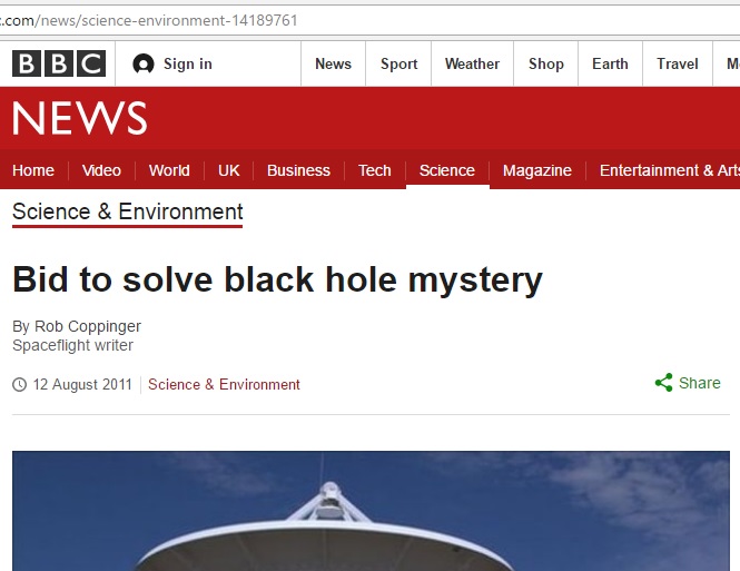 I have written various science and technology stories for the BBC. Follow this link to read about the Bid to solve the Black hole mystery.